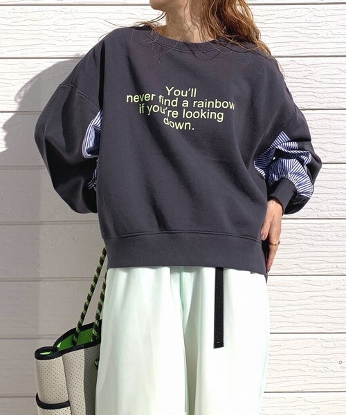 異素材ドッキングのロゴトレーナです。程よいボリューム感と異素材の組み合わせが、カジュアルスタイリングにぴったりな一着。袖下の異素材使いがおしゃれなアクセントになっています。ロゴはシンプルにしているので、カジュアルながらも品のある雰囲気を演出してくれます。ルーズ感と袖ボリュームの女性らしいシルエットで、オトナカジュアルに着こなせるスウェットアイテムです。《インフォメーション》◆商品のお気に入り登録完売していても再入荷時に再入荷通知を受け取ることができますので、是非ご登録ください。◆ブランドのお気に入り登録新商品や再入荷などの情報を受け取ることができますので、是非ご登録ください。