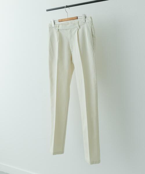 洗練された大人のスタイルを完成させるテーパードデニムスラックス1タック仕様で洗練されたシルエットを実現したデニムスラックス。適度なテーパードラインが脚元をすっきりと見せ、デニム特有のカジュアルさを抑えたスマートな印象を与えてくれます。1タックによるリラックスした着心地を提供し、センタープレスが施されたことにより、ミニマルでありながら上品なスタイリングが可能です。日常のカジュアルコーデから、少しきれいめなスタイルまでオンオフ問わず活躍する、デイリーに使いやすいデニムスラックスです。【2025 Spring/Summer】【25SS】※この商品(BLK,NVY)は染色の特性上、着用中の摩擦や汗などによる他の衣類や下着、淡い色のベルトやカバン、ファーなどに色移りする事があるので、コーディネートやお取り扱いにご注意ください。※長時間濡れたままにすると色が落ちたり生地が縮むことはあります。洗濯後は、形を整えてすぐに陰干ししてください。※その他お取り扱いに関しましては、商品に付属のアテンションタグをご覧ください。※商品画像は、光の当たり具合やパソコンなどの閲覧環境により、実際の色味と異なって見える場合がございます。予めご了承ください。※商品の色味の目安は、商品単体の画像をご参照ください。▼お気に入り登録のおすすめ▼お気に入り登録商品は、マイページにて現在の価格情報や在庫状況の確認が可能です。お買い物リストの管理に是非ご利用下さい。素材感透け感 : なし伸縮性 : ややあり裏地 : なし光沢 : なしポケット : ありML