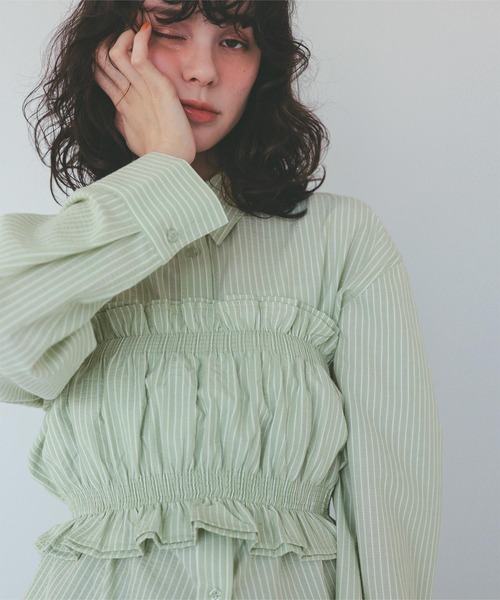 表情感と可愛さが詰まった、レディライクなシャーリングビスチェ。 ■Point ・2段シャーリング&フリルデザイン:シャーリングを2段施し、裾にフリルをあしらった可愛らしいデザイン。 ・サッカーストライプ生地:表面にぽこぽこしたサッカーストライプ生地を使用し、他にはない表情感と立体感を演出。 ・セットアップ可能:同生地のシャツ(AFXP4242)とセットで合わせれば、シルエットに変化をつけたスタイリングが楽しめます。 ・クロスコーディネート可能:シャツや薄手のニットと合わせて、幅広いアイテムとコーディネートできる優秀アイテム。 ■Coordination ・カジュアルコーデ:デニムやチノパンと合わせて、デイリースタイルにぴったり。 ・フェミニンスタイル:シンプルなスカートと合わせ、上品でレディなコーディネートに。 ・セットアップスタイル:同生地のシャツと合わせて、統一感のあるシルエットを楽しんで。 サッカーストライプの立体感とシャーリングデザインが、シンプルなコーディネートにも華やかさを加えるビスチェです。 ※当商品は機械による生産の過程上、どうしても"生地を織る際の糸の継ぎ目"や多少の"ほつれ"、他繊維の"混紡"、また、形やサイズや柄に多少の"誤差"が生じる場合がございます。 ※サイズは、実寸サイズを測っているため多少誤差がでる場合があります。製造工程の関係上、各採寸箇所実寸(平置き)より【約-3cm~+3cm】程度は誤差の許容範囲とさせて頂いておりますので、予めご了承くださいませ。 ※メーカーより密封状態で入庫し、検品時に再度袋詰めを行っておりますが、素材により染料等の臭いが強い場合がございます。 ※発送上の状態によって商品がシワになる場合がございます。 ※商品により色落ち・色移りがある場合がございますので、品質表示をご確認の上、お取り扱いにご注意くださいませ。 【伸縮性】あり 【透け感】淡色に多少あり