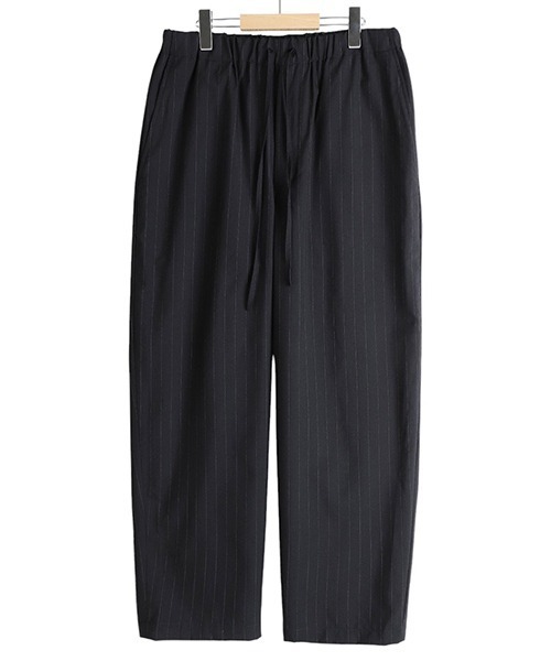 柔らかなウールトロピカルで製作したコクーンフィットのイージーパンツ 【デザイン】 ・markaで定番展開されているコクーンワイドイージーパンツをウールトロピカル生地で製作 ・美しいドレープとゆったりとしたワイドシルエットで、上品さとリラックス感を演出 ・軽やかで通気性に優れたウールトロピカル素材を採用し、春夏シーズンに最適 ・ワッシャータンブラー加工により、ナチュラルでこなれた風合いを実現 ・きれいめな印象ながら、日常使いしやすい柔らかな生地感が魅力 ・カラーは奥行きのあるシャンブレーブラック、さりげなく主張してくれるネイビーストライプの二色展開 、セットアップでの着用も可能 【素材】 ・柔らかく滑らかな風合いが特徴のウールトロピカル生地 ・ワッシャータンブラー加工を施し、洗いざらしのようなカジュアルな雰囲気が特徴 【シルエット・サイズ】 ・繭のようなシルエットが特徴的のコクーンフィットをワイドテーパードシルエットにアレンジ 【商品画像について】 ・閲覧環境や撮影環境による光の違いにより、掲載画像は実際の色と異なって見える場合がございます。(商品の色調は白背景の商品単体画像をご参照ください。)