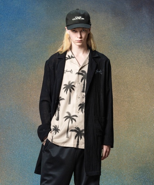ロングコートのシルエットを季節感を捉えた素材使いによってサマースタイリングにも提案するSheer Long Shirt。ロングシルエットのボディは襟にノッチドラペル、バックスタイルにセンターベントをあしらったチェスターコートを思わせるディテール使いとなっています。そこへ落とし込まれたのはヴィンテージリネンの風合いをコットン素材で再現した楊柳生地。薄手ながらリネンよりも防皺性を高めた生地を1枚仕立てにすることで夏のデイリーユースに対応する着心地に。腰元の2ポケットはフラップや玉縁ではなくカジュアルなムードのパッチポケット仕様であしらい、フォーマルに傾き過ぎないルーズなニュアンスを添えています。 ■About glamb 2003年、“Grunge for Luxury”をコンセプトにデザイナー古谷完が東京で設立。 グランジやロックスタイルを基調とした洋服作りはアーティストやタレントの間にも愛用者が多く、音楽や映画、ドラマといった映像への登場も数多い。 数々のコラボレーションも近年ではブランドの代名詞。 ザ・ローリング・ストーンズ、忌野清志郎、hideといったアーティストに加え、『ジョジョの奇妙な冒険』 『チェンソーマン』といった作品まで幅広いコラボレーションを発表している。