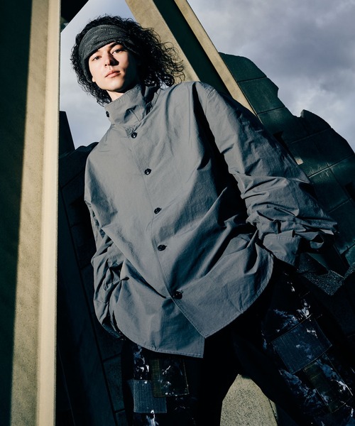 随所に加えられた独創的なシルエットアレンジがアーバンなスタイリングを生み出すDeformed Stand Collar Shirt。ハイネックとなった変形襟は、前身頃の合わせを中心からずらすことで顎元を覆うような立体的な形状を表現。首元のボタンを外した際には、右襟は立てて、左襟は垂らすといったアレンジも可能です。テキスタイルに用いたのはアウトドア生地として生まれた60/40クロス。同生地を用いたKnee Tuck Sarrouel Pantsも展開されており、タウンウェアからレジャーシーンまで構築的なセットアップスタイルでお楽しみいただけます。 ■About glamb 2003年、“Grunge for Luxury”をコンセプトにデザイナー古谷完が東京で設立。 グランジやロックスタイルを基調とした洋服作りはアーティストやタレントの間にも愛用者が多く、音楽や映画、ドラマといった映像への登場も数多い。 数々のコラボレーションも近年ではブランドの代名詞。 ザ・ローリング・ストーンズ、忌野清志郎、hideといったアーティストに加え、『ジョジョの奇妙な冒険』 『チェンソーマン』といった作品まで幅広いコラボレーションを発表している。