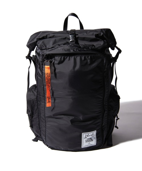 今季のテーマ“TIME TRAVELER”のコンセプトを色濃く反映するシリーズ「TIME TRAVEL GEAR」から、宇宙服の背中に搭載する生命維持装置(Life Support System)をラゲッジに昇華したTIME TRAVELER LSS Backpack (GEAR 014)が登場。メインコンパートメントは1週間分の洋服とカメラまでも収納可能なビッグサイズ。ジップ式フロントアクセスにより、どの位置の荷物にも簡易に手が届く嬉しい仕上がりになっています。さらなる収納を叶えてくれる最大25cmまで延びるロールトップからも内部へのアクセスが可能。使わない時は丸めてバックルで留めて、コンパクトにまとめておける便利なギミックとなっております。更に2つのアウターポケットと、インナーには視認性に優れたメッシュポケットを備え、用途に応じて荷物の棲み分けを可能にしました。素材には軽量で透湿防水性に富むM-40 MU-TECHを使用。ショルダーストラップと背面部にはスポンジを入れてクッション性を向上しています。オレンジリボンとシルバータグに書かれたのはテーマにちなんだテキスト。細部にブランドのウィットを込めて仕上げました。