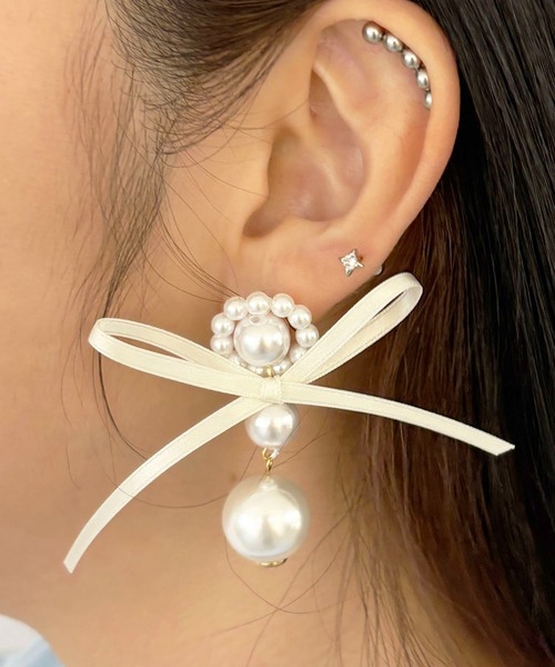 ■POINT 可愛いを詰め込んだパール×リボンピアス。上品な輝きのパールが耳元を華やかにしてくれます。 オケージョンシーンはもちろん、あえてTシャツなどカジュアルコーデに取り入れるのも◎ ■COLOR IVORY/BLACK ※画像の商品は光の照射や角度により、実物と色味が異なる場合がございます。また表示のサイズ感と実物は若干異なる場合もございますので、予めご了承ください。 ※お取り扱いの際は、商品についている品質表示とアテンションタグを必ずご確認下さい。 <<Casselini/キャセリーニ>> 1987年にスタートした日本の服飾雑貨ブランド。 Be myself / With playful ただ"かわいい"だけじゃない いくつものテイストを取り入れたミックススタイル。 わたしらしさをつくるもの。 ころころと変わる毎日の気分に寄り添える小物を提案します。 <<お知らせ>> ◆商品のお気に入り登録◆ お気に入りアイテムの値下げ・再入荷・在庫1点などの通知を受け取ることができます。 ◆ブランドのお気に入り登録 ◆ 新商品や再入荷、セール、クーポン配布などお得な情報を受け取ることができます。 ※ご注文いただいた予約商品のお届け時期の確認は、注文履歴ページより行えます。