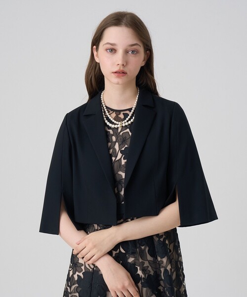 【Spring & Summer Collection 2025】 マットな質感が上品な二重織りのサテンです。 適度な膨らみがありながら、ややストレッチが効いており、しなやかな落ち感がエレガントな素材です。 テーラー衿がポイントのボレロ。 セレモニーシーンのワンピースに合わ せやすい、一番上に一つだけ前留めがある仕様です。 袖にはスリットを入れ、腕が程良く見え隠れする抜けのあるデザインに。 身頃はダーツをとりスッキリとした美しいシルエットに仕上げました。 ハイウエストのワンピースと合わせやすい短めの着丈で、結婚式や二次会、お食事会等のオケージョンシーンにもおすすめです。 【付属】なし 【裏地】あり 【透け感】なし 【開き・留め仕様】前ホック開き 【伸縮性】ややあり 【ケア方法】ドライクリーニング 【着用感・生地の厚さ】二重織りのマットサテン model:172cm 着用サイズ:38 【ANAYIサイズ表】 34サイズ:5号 XSサイズ相当 36サイズ:7号 Sサイズ相当 38サイズ:9号 Mサイズ相当 ・「商品のお気に入り登録」や「ブランドのお気に入り登録」で新商品や再入荷通知、セール通知などのお得な情報を受け取ることができます。 ・照明の関係により、実際よりも色味が違って見える場合がございます。 またパソコン・スマートフォンなどの環境により、製品と画像のカラーが異なる場合もございます。予めご了承ください。