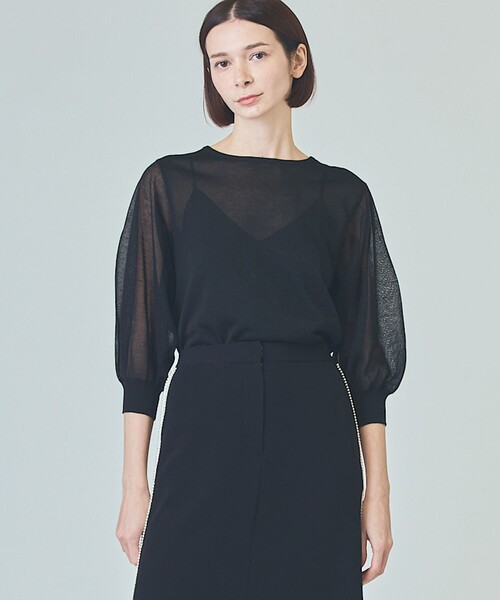 繊細なラメ混の糸で編み立てた2WAYニットトップス。透け過ぎない程よいシアー感やギラギラし過ぎないラメ感が、何気ない日常の装いをアーバンムード溢れる着こなしへとアップデートしてくれます。袖にボリュームをもたせた愛らしいフォルムもポイント。バックスタイルが釦開きなので、前後逆に着ればカーディガンとしてもご着用いただけます。どんなスタイリングにも溶け込む、着まわしやすいベーシックカラーをご用意しました。※こちらの商品はサンプル品を撮影しております。実際の商品と仕様、加工、サイズが若干異なる場合がございます。予めご了承くださいませ。洗濯表示洗濯不可 漂白不可 タンブル乾燥不可 アイロンは120℃まで 弱いドライクリーニング(石油系)可