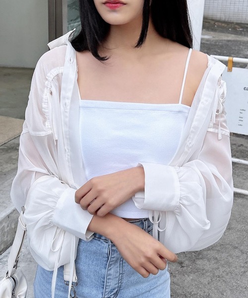 シンプルで合わせやすい細リブ生地のベアキャミソールがデイリーに活躍。 ボディラインにフィットするリブと細ゴムのショルダーストラップが華奢見えを叶えます。 伸縮性のあるやわらかな生地で着心地も快適。 トレンドのシアートップスのインにもおすすめです。 取り外し可能なパッド付き。 着回し力抜群のベーシックなカラーが揃っています。 ・パッド取り外し可 【以下ボーダー参考。カラーにより多少の誤差あり】 ・透け感:やや透ける(表地) ・伸縮性:あり ・生地の厚さ:普通 ・裏地:あり