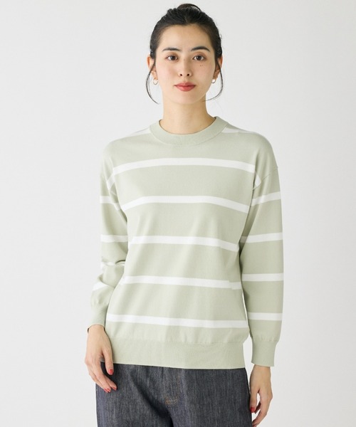ソフトな風合いで肌触りが良く、ストレッチの効いた着心地の良い素材です。配色にこだわった大人カジュアルな雰囲気のボーダー柄に仕上げました。詰まり気味のクルーネックで首元はミニマルに。インナーにシャツやブラウスを合わせることも計算した、オーバー過ぎないサイズ感がポイントです。シンプルながらも様になる絶妙なデザインが、いつものスタイルを格上げします。 ・水洗い可 ■素材■コアスパンヤーンの生産技術の発達により、膨らみ・柔軟性・ソフトな風合いの特殊構造を実現しました。ストレッチ性と安定性、高い吸湿性と着心地の向上を両立させています。肌触りも良いため、オールシーズンの着用が可能です。 ■サンプル撮影商品■ こちらの商品はサンプルでの撮影となっております。実際の商品とは、サイズや色味、素材、デザイン等の仕様が若干変更になる場合がございます。