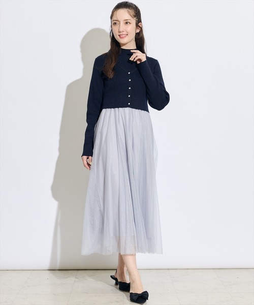昨年春に大人気だったワンピースが今年はハイネックで登場♪【上品な輝きを放つリッチなボリュームチュールが大人フェミニンに仕立てる、ドッキングアンサンブルワンピース】【Point】・艶のような上品な輝きを放つ2種類の微配色チュールを重ねたドッキングアンサンブルワンピース。・カーディガンはビジューボタンがアクセントに。単品使いしやすいベーシックな着丈で着回しできます。・プチハイネックのニットがクラシカルな品の良さを演出。今年らしいさりげなく輝くラメニットがお顔映りを綺麗に見せてくれます。・カーディガンの肩を落として着ることで、さりげない肌見せができ、大人な抜け感を楽しむことが出来ます。ケア方法:ドライクリーニング透け感:なし裏地:あり伸縮性:あり光沢感:微光沢生地の厚さ:〈ニット〉中肉〈スカート〉薄手F:(00):【ワンピース】着丈 122㎝/バスト 65㎝/肩幅 32㎝/ウエスト 64㎝【カーディガン】着丈 41㎝/バスト 86㎝/肩幅 34㎝/袖丈 54㎝/袖幅 14.5㎝/袖口幅 9㎝