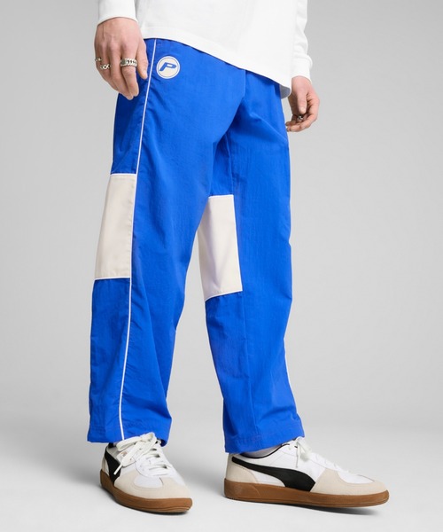 商品情報 大胆なグラフィックと安全なジッパーポケットが特徴的なトラックパンツが登場。 冷たい風の侵入を防ぐwindCELL、リラックスフィットのゆったりとしたシルエットで快適な着用感を提供します。調節可能なウエストバンドとコントラストの効いたパイピングにより、高いデザイン性と機能性を兼ね備えています。同コレクションのトラックジャケット【品番: 631801】と合わせてセットアップコーデもおすすめです。 特徴 リサイクル素材使用:より良い未来への一歩としてトリムや装飾を除き100%リサイクル素材を使用しています windCELL:冷たい風の進入を防ぐ高機能防風素材により、運動中も衣服内は快適 詳細 ゆったりとしたシルエットで快適な着心地のリラックスフィット 平織り生地 レギュラー丈 ミディアムライズ サイドポケット プーマロゴ