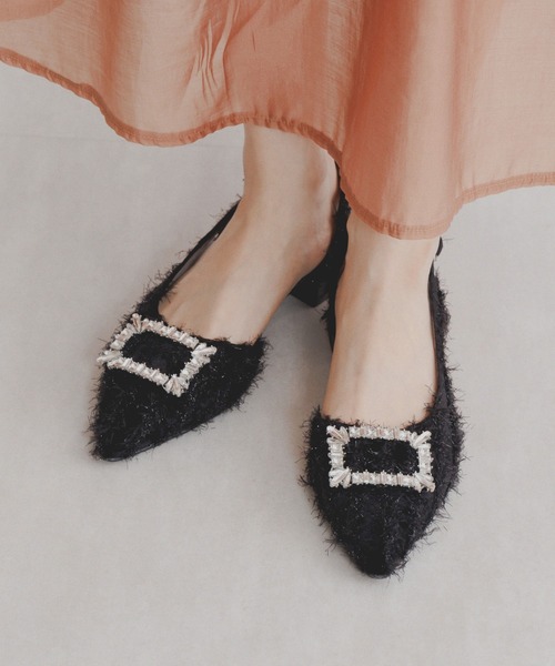 NICAL 2025 SPRING&SUMMER COLLECTION きらきらと輝くビジューバックルが目を引くバックストラップパンプス。 ボリューム感のある生地を使用し、乙女心をくすぐる一足。 バックストラップデザインが脱げにくく、サイドがら足をすっきりときれいに見せてくれます。 アイボリー、ブラックは光沢感のあるシャギー生地を使用し印象的な足元に。ブラック/Cは上品なモノトーンのツイード生地で大人っぽく仕上げました。 《スタッフ着用コメント》 ◆Nさん [足幅:幅広/甲の高さ:ふつう/内反小趾気味] [普段のサイズ:23.5] [着用サイズ:23.5/着用状況:ストッキング着用/サイズ感:ぴったり] 幅も無理なく足先伸ばせて楽でした。生地仕様ですが、硬くて当たるような印象もなく履きやすい!さりげなくキラキラするのが可愛くて、春夏の明るい陽射しに映えそうです。 *…*…*…*…*…*…*…*…*…*…*…*…*…*… ※画像の商品はサンプルです。実際の商品と色味、仕様、加工、サイズ、素材等が若干異なる場合がございます。 中底クッション貼り つま先裏クッション有り ●ヒール高: 3.7cm ●素材: 生地 ●原産国: 中国 ●幅: E ●お手入れ方法 ≪生地≫シューキーパーなどで履きしわを伸ばし、しわの間の汚れを取りやすくします。靴用ブラシ(毛先が柔らかい天然毛のブラシが便利です)で表面のホコリや泥を落とします。あまり強くこすると、素材表面が傷になります。クリーナー類の使用は避けてください。防水スプレーをかけて乾かしてください(30秒程度)。水をはじき、汚れ防止にもなります。かけすぎや、至近距離からのスプレーはシミになりやすいのでご注意ください。 【お買い物便利機能のご紹介】 ◆商品のお気に入り登録◆ カートの♡をクリックすると、完売カラーの再入荷・ラスト1点通知・セール通知を受け取ることが出来ます。気になるアイテム/カラーに♡をつけておくと、あなたの元にうれしいお知らせが★ ◆ブランドのお気に入り登録◆ 新商品の入荷や、完売アイテムの再入荷など、いち早くブランドのお得な情報を受け取ることができます。卑弥呼ブランドの最新情報が知りたい方はぜひお気に入り追加してみてください。 株式会社卑弥呼(HIMIKO) ■サイズ展開 S M L LL(XL) 小さなサイズ 大きなサイズ 韓国系 バックベルト らくちん ストレスフリー 定番 人気 レディース パンプス カジュアル モード シンプル ベーシック OL デイリーユース 小さいサイズ 大きいサイズ チェック ビジュー シャギー ツイード ボリュームソール フェミニン クッション ソフト