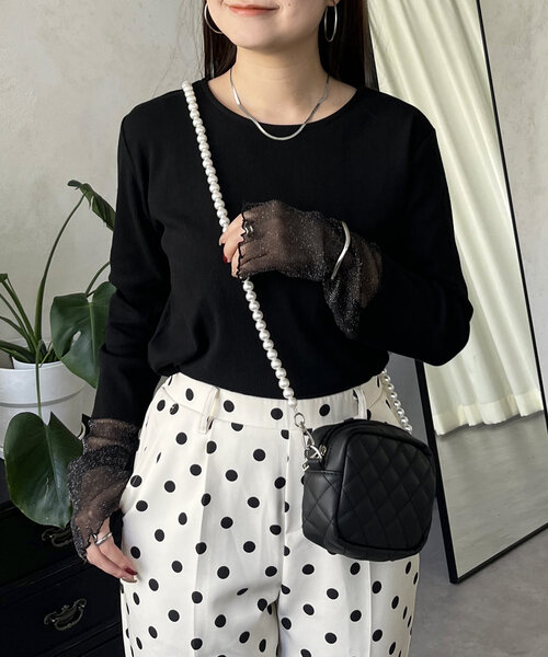 大人気の"袖シアートップス"にラメバージョンが登場!●袖元のラメがポイント●1枚でもレイヤードコーデにも使える優れもの◎●お好みのアクセサリーを付け加えるとさらに華やかに●合わせるボトムスを選ばず着回し抜群ですシアー/ラメ/ロンt/大人カジュアル/シンプル/着回し--------------------------------------------------------------生地の厚さ:やや薄め伸縮性:ややあり透け感:ややあり裏地:なし洗濯方法:ご自宅で洗濯可--------------------------------------------------------------※商品のお取り扱いに関しましては、商品に付属のアテンションカード、洗濯ネームをご覧ください。※撮影場所やお使いのモニター環境により若干お色味が異なる場合がございます。特にロケの撮影では明るく見える傾向にございます。 ※サイト上ではフリーサイズの表記ですが、商品タグにはMサイズと表記されている場合がございます。その場合、ワンサイズでのご用意となりますのでサイズミスなどではございません。詳しいサイズはサイズスペックをご確認いただきますようお願い致します。※サイト上でのカラー名とお届けした商品に記載されているカラー名が異なる場合がございますので予めご了承ください。<返品・キャンセルについて>・着用・洗濯後の返品は致しかねます。・商品到着後、着用前に商品を確認して頂きますようお願い致します