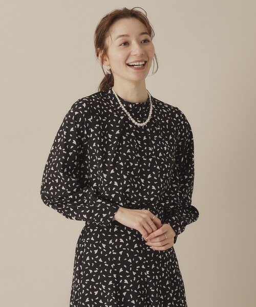 【デザイン】 アニマル柄風のハートプリント柄が大人可愛い。 バレンタインシーズンにぴったりのフェミニンブラウス。 大人な雰囲気で着られるハートプリントブラウス☆ アニマル柄の様な崩した手書き風ハートがおしゃれ。 襟のタックデザインが胸元を立体的にふんわり柔らかな印象に。 後ろ開きは比翼仕様になっているので、肌が見えることなくきちんと感を演出。 同素材のスカート【P93-62504】とセットアップで着ればワンピース風にも着られて春の軽やかスタイルの完成です♪ 【素材】 さらりとしたタッチ感のポリエステルデシン素材を使用。 ※照明の関係により、実際よりも色味が違って見える場合があります。また、パソコン・スマートフォンなどの環境により、若干製品と画像のカラーが異なる場合もございます。 モデル情報:身長171cm B80 W59 H88 着用サイズ:00(フリーサイズ) 店舗へのお問い合わせ商品番号:P93-52510 ●製品寸法: 00(フリーサイズ):着丈61cm B100cm 袖丈56cm 肩幅36cm 備考: