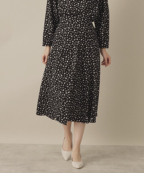 【デザイン】 アニマル柄風のハートプリント柄が大人可愛い。 バレンタインシーズンにぴったりのアイテム。 大人な雰囲気で着られるハートプリントスカート☆ アニマル柄の様な崩した手書き風ハートがおしゃれ。 差し込みデザインのゴアードフレアスカートは、腰~ヒップ周りはすっきりと、 裾に向かってたっぷりの分量でエレガントに広がるドラマティックな一着。 後ろウエストはゴム仕様なので着脱しやすくサイズカバー力も◎ 同素材のブラウス【P93-52510】とセットアップで着ればワンピース風にも着られて春の軽やかスタイルの完成です♪ 【素材】 さらりとしたタッチ感のポリエステルデシン素材を使用。 【仕様】 ・ポケットなし ・ウエスト後ろゴム ・裏地あり ※オフホワイト(103)はやや透け感があります。 ※照明の関係により、実際よりも色味が違って見える場合があります。また、パソコン・スマートフォンなどの環境により、若干製品と画像のカラーが異なる場合もございます。 モデル情報:身長171cm B80 W59 H88 着用サイズ:00(フリーサイズ) 店舗へのお問い合わせ商品番号:P93-62504 ●製品寸法: 00(フリーサイズ):W62~68cm H84cm 総丈80cm 備考: