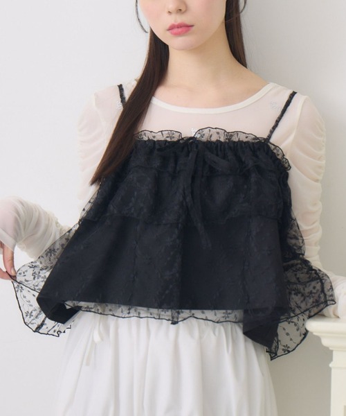 <シアー素材のインナーとレースビスチェのセットで価値感あるセットアイテム> ▼デザイン インナーは春らしい透け感のある素材のアイテム。 emsのオリジナルロゴがビジューで施されています。 袖シャーリングデザインも注目のポイント♪ セットのビスチェは総レースのティアードデザインで、ガーリーな1枚。 ▼コーディネート セットでの着用はもちろん、インナーはお手持ちのワンピースにレイヤードしても◎ キャミソールにビスチェを合わせることで夏らしいノースリスタイルも楽しめます♪ ▼セット内容 ・シアーインナー ・ビスチェ ------------------------------ 生地感:インナー:薄手 ビスチェ:普通 伸縮性:インナー:ある ビスチェ:なし 透け感:インナー:ある ビスチェ:なし 裏地:インナー:なし ビスチェ:ある ------------------------------ ▼ブランド紹介 ems excite (エムズエキサイト) “more fun more cute” 今をもっと楽しく もっと可愛くいたい女の子に向けた girly cuteなブランド #ビスチェ #カットソー #レース #セットアイテム #インナー #ビジュー ▼注意事項 ※撮影環境やモニター環境によって実際の商品とお色味が 多少異なってみえる場合がございます。 品番:EP580023G003 / 品名:キラキラインナー&ビスチェSET
