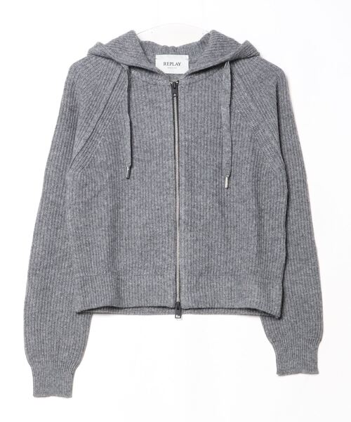 すぐに着心地の良さを実感できる、柔らかいウールMIXのニットパーカー。クロップド丈、細リブ編み、メタルアグレット付きのドローストリングフード、フロントの便利な両方向ジッパー留めが特徴です。背面の象徴的な Replay レタリング ラベルが仕上げのアクセントになっています。