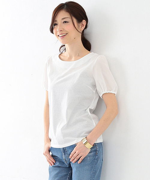パフスリーブがポイントの、シンプルなプルオーバー。 袖のボリューム感がかわいくなりすぎず絶妙のバランス。広めのネックで女性らしさもプラス。インでもアウトでも合わせやすい仕上がりです。 スカートに合わせてオフィススタイルに。肩からさっと綺麗カラーのカーディガンを羽織れば一味違ったスタイルに。着回し力抜群のひと品です。