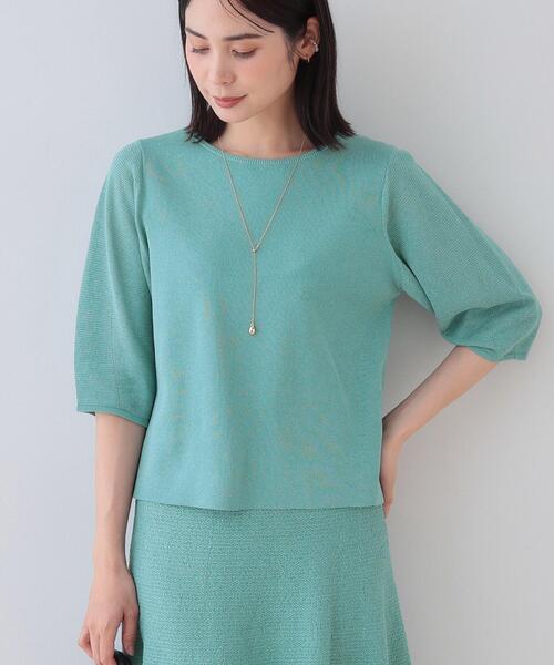 【デザインポイント】大人が上品に着られる和紙混のプルオーバーニット。身頃は総針組織で、袖はガーター組織で編み地を変えることで、袖にややシアー感が出て清涼感が出ます。身頃はスッキリしたサイズ感に対し、袖は二の腕に優しく沿う甘すぎないバルーンデザインの5分袖。さらっとした着心地がシンプルなニットを大人上品な印象に仕上げます。【スタイリングポイント】同素材のスカート(127-72453)とのコーディネートがおすすめです。その他、ワイドパンツなどとも好相性です。【素材ポイント】和紙を用いることで、リネンのような風合いとスッキリとしたドライタッチが特徴の素材です。和紙ならではの表情感が表面感、立体感を与えます。※照明の関係により、実際よりも色味が違って見える場合があります。また、パソコン・スマートフォンなどの環境により、若干製品と画像のカラーが異なる場合もございます。【生地詳細】透け感:ややあり伸縮性:ややあり生地の厚み:普通裏地:なし洗濯方法:手洗い可オフ率50%以上モデル情報:身長167cm B79 W59 H87 着用サイズ:38(M)店舗へのお問い合わせ商品番号:127-12453●製品寸法:05(XXS):着丈52cm B86cm 袖丈33cm 肩幅33cm13(LL):着丈57cm B100cm 袖丈36cm 肩幅37cm15(3L):着丈58cm B106cm 袖丈37cm 肩幅38cm19(5L):着丈60cm B114cm 袖丈38cm 肩幅39cm34(S):着丈55cm B92cm 袖丈36cm 肩幅35cm38(M):着丈56cm B96cm 袖丈36cm 肩幅36cm備考: