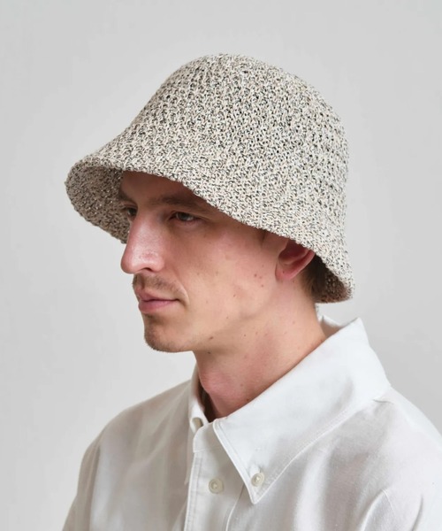 Nine Tailor シンプルで使い込むほど馴染んでいく、細部にも気を配った帽子を作ります。 新しい流れや、古くから継承されていくもの。 様々な要素や感覚、技術を取り入れ、また受け入れながら、少しづつ変化を楽しめる、そんな帽子を形に残していきます。 “Nine Tailors make a man.” 『 仕立て屋は9人で一人前 』『 一人前になるには9つのお店、仕立屋(Tailor)が必要 』という二つの意味を持つこの言葉はイギリスの諺から引用。 二つ目の “9つのお店、仕立屋が必要” と言うところから、その日に身に着けるもの <ジャケット シャツ パンツ 時計 クツ 靴下 カバン ベルト・・・>その中でも9番目のモノとして、その日のスタイリングの最後の一つとして、この帽子を使ってもらいたい。 そんな意味が込められています。 ------------------------------------------------------ 特殊コーティングをしたコットンとシルクネップのサーモンバケットハット。 程よい深さのクラウンに、緩やかな傾斜のツバにすることですっきりとした印象に仕上げました。 程よい透かし編みも涼し気な印象を与えてくれます。 サイズ調整アジャスター付き。