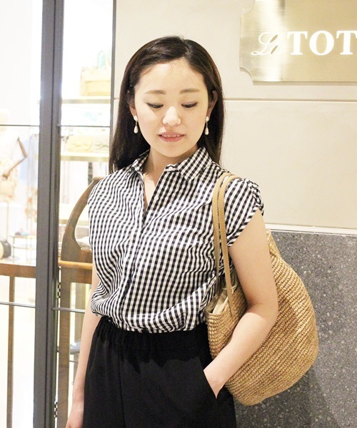 フレンチスリーブのコンパクトなラインのシャツ。ギンガムチェック、ストライプ、無地の選べるカラーバリエも嬉しいですね。カラー違いで揃えても、必ず使えるデイリーアイテムです。イン・アウトもバランス良くスタイリングできます。 ※店頭・外での撮影画像は、光の当たり具合で色味が違って見える場合があります。商品の色味は、スタジオ撮影の画像をご参照ください。