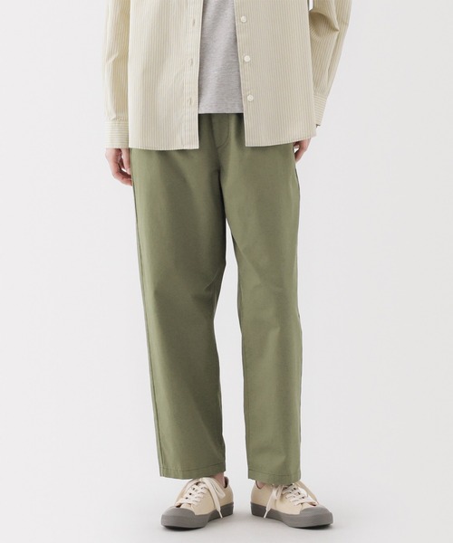 綿100%の素材で、ゆとりをもたせて作りました。綿はアフリカの自然が育てました。【素材】機密に織られた生地で耐久性が高く、程良いとろみがあるやわらかな手触りの生地を使用しました。【デザイン】ウエストはゴム仕様で、リラックス感のあるシルエットが特長です。腰回りから太ももはゆったりして、膝から裾にかけて細くなるテーパードシルエットです。ウエストの内側には紐が入っているのでお好みのフィット感が楽しめます。【仕様】透け感:なし(ピンクはややあり)伸縮性:なしフィット感:ゆったりめ股上の深さ:普通※ピンクはやや透け感のある色味のため、肌の色に近い色のインナー着用をおすすめいたします。【こちらもおすすめ】同型のデニム素材「洗いざらし デニムイージーテーパードパンツ」もおすすめですお取扱い上のご注意 : ●濃色製品は使用中の摩擦や濡れた状態での接触により色移りする事があります。洗濯の際は他のものと分けて洗ってください。お取扱い上のご注意2 : ●素材の特性上、着用や洗濯・クリーニング時の摩擦により毛羽立ち、毛玉が発生します。その際はお早めに毛玉取り器などで手入れをしてください。お洗濯上のご注意 : ●淡色製品には蛍光増白剤入り洗剤を使用しないでください。お洗濯上のご注意2 : ●洗濯ネットをご使用ください。お洗濯上のご注意3 : ●プリント部分はアイロンでこすらないでください。