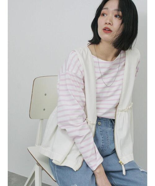 ふわっと広がるペプラムシルエットが可愛らしいベスト。 切り替えにギャザーをたっぷり加えることで、華やかなシルエットを演出してくれます。 シンプルなVネックは顔周りをすっきり見せ、どんなアイテムともバランスよくマッチ。 スタイリングに取り入れることで、大人の女性らしい着こなしが楽しめる1着です。 ※商品画像は、撮影環境やお客様のご利用のPC・スマートフォンのモニター環境などにより実物と色味に差異がある場合がございます。