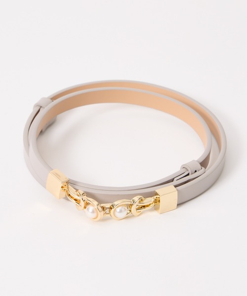 パールのバックルが目を惹く細ベルト。バックルはホックタイプで簡単に着脱ができるようになっています。 ベルトはスライド式なのでサイズ調整が可能です。 ウエストに添えるだけで上品でレディライクなスタイルが完成します。 結婚式などのパーティーシーンにはもちろん、デイリーのきれいめスタイルにもおすすめのアイテムです。 ※照明の関係により、実際よりも色味が違って見える場合があります。 またパソコン・スマートフォンなどの環境により、若干製品と画像のカラーが異なる場合もございます。 予めご了承ください。