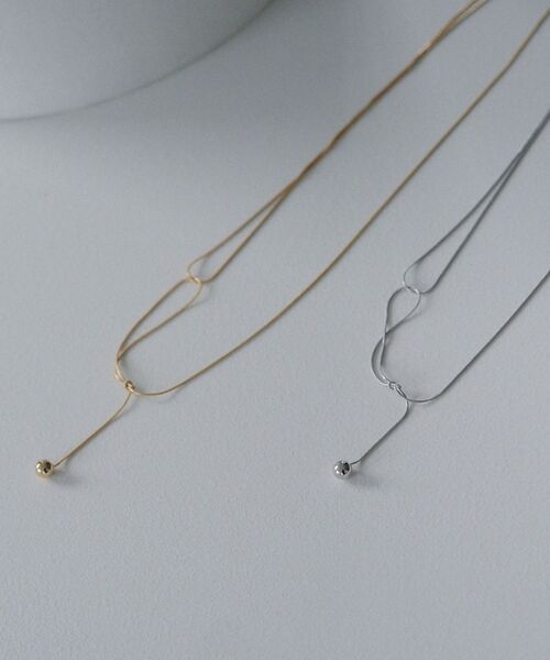 華奢なチェーンにメタルボールが目を惹くロングネックレス。縦長のスレンダーなY字シルエットにノットモチーフがトレンド感たっぷりのデザインです。折り返しクロスしたチェーンがさりげないアクセントに。カジュアルにもきれいめにも幅広いスタイリングに合わせてお楽しみいただけます。※モデル着用画像は、光の当たり具合で色味が違って見える場合がございます。※お使いのモニター環境によって商品の色味が違って見える場合がございます。-------------------------------------------●YECCA VECCA●(イェッカ ヴェッカ)「大人のハッピーモードな着映え服」毎日を自分らしく、ハッピーに過ごすことにポジティブな女性のためのリアルクローズ。キーワードは「遊び心のある、女性らしいモード服」でも「コンフォート」。都会的で女性らしいムードを大切に着ていて心地よく、気持ちが上向きになるような遊び心のあるデザインウェアをラインナップ。自分自身がわくわく出来る洋服で日常を最大限に楽しむ大人の為のスタイルを提案していきます。▼商品のお気に入り登録がおすすめです ▼商品ページ内のハートマークをクリック。完売時の再入荷や、最後の1点の通知、コーディネート画像がアップされたとき、お得なお値下げの際の通知を受ける事ができます。【お知らせ】ページでも通知が確認できます。-------------------------------------------