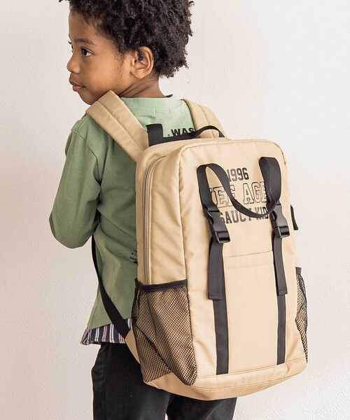 カレッジロゴをプリントし、その上からつけたテープとバックルがかっこいいリュック。 アメカジコーデとも合わせやすくお洒落に決まるアイテムです。 体の大きさに合わせて選べる2サイズをご用意。 カラーは ブラック・ベージュ でのお洋服に合わせやすい2カラーでの展開です♪ 荷物を出し入れしやすいWファスナー仕様で、 サイドやフロントにもポケットを完備し遠足や行事にも重宝間違いなしのアイテムです。 【 WASK(ワスク)】 WEEAGEDSAUCYKID「我々は小生意気な子供である・・・」 自由で遊び心満載な男の子たちへ アメリカンテイストをベースにその時々のトレンドや異なる要素をプラス エッジの効いたカジュアルスタイルをキッズウェアで表現