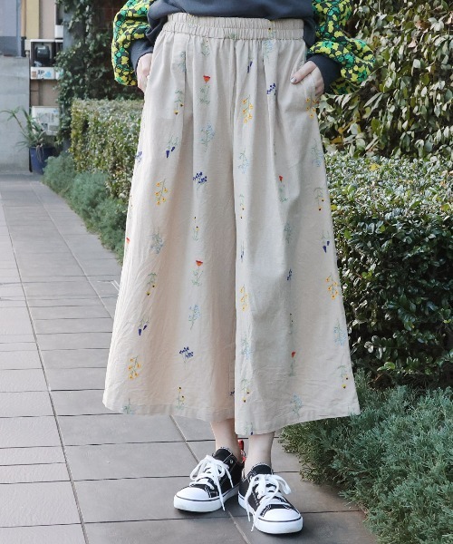 可愛らしい小花を散りばめた、女性らしい綿麻パンツ■デザイン暖かな季節の訪れを感じる、優しい雰囲気がたまらない♪カラフルな草花の刺繍を麻混の生地にのせて、爽やかに仕上げました。スカート見えするふんわりとしたワイドシルエット。足首がすっきりと見えるミモレ丈で軽やかな印象にしています。■サイズ感レディースフリーサイズウエストは紐&ゴム仕様で締め付け感を軽減。脚のシルエットを拾いにくい、ふんわりワイドパンツです。■素材感さらりとした綿麻生地で通気性も抜群。■スタイリングふんわりとした薄手のシアーシャツと合わせて、ナチュラルなコーディネートに。定番のロゴTシャツとのスタイリングもカジュアルな雰囲気になってオススメです。同シリーズとのセットアップコーデも◎■カラーベージュ/グリーン/ネイビー■お手入れ手洗い/ドライクリーニング---------------------------------透け感:やや透ける(ベージュのみ)伸縮性:なし裏地 :なし光沢 :なし生地の厚さ:薄手ポケット:あり---------------------------------【お取り扱い上のご注意】この製品はアジア諸国の特徴、風合いを生かして作られています。お取扱いの際は下記の点にご注意下さい。・洗濯の際、色落ちする場合がありますので他の物と分けて洗って下さい。また、長時間のつけ置きはお避け下さい。・漂白剤及び蛍光増白剤入りの洗剤はご使用をお避け下さい。・摩擦や発汗、雨などで濡れた際はほかの衣料やバッグなどに色移りすることがありますのでご注意下さい。・生地の性質上、縮み・織りむらがあります。【品番変更のお知らせ】2025年2月7日より品番を「25025140642、25025140643」から「25025140641」に変更いたしました。商品タグに旧商品番号が記載されている場合がございますので予めご了承ください。【TITICACAのお買いものをお楽しみいただくために!】▼商品のお気に入り登録完売カラーの再入荷通知や、ラスト1点の通知、セールの通知も受け取ることができます。▼ブランドのお気に入り登録新商品や再入荷など、いち早くブランドのお得な情報を受けることができます!