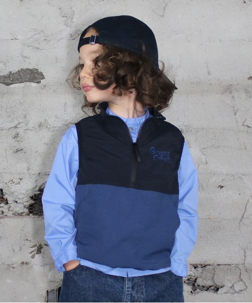 マットな色調でコットンライクな肌触りが特徴の、ナイロンタスランタフタを使用。 軽さの中に強度と耐久性を持ち、撥水性と紫外線をブロックする特性を兼ね備えた素材。 左胸にブランドロゴ刺繍。2TONEカラーのプルオーバータイプVESTはTシャツとの相性も良く、シンプルになりがちな春夏のスタイルに変化をつけてくれる1着です。