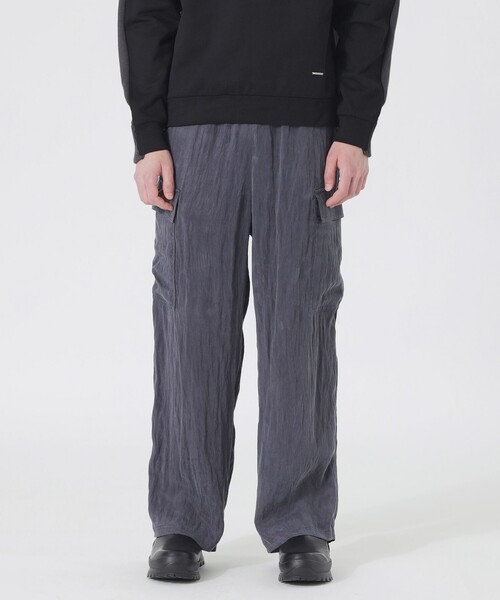 表情のあるフィブリル素材を使用したワイドカーゴパンツ【素材】独特なドレープ感があり肌触りがさらっとしているツイル素材を使用。繊維を構成する小繊維「フィブリル」を摩擦させることで毛羽立ちやふくらみを持たせる加工を施すことで生まれる色落ち感が特徴です。【シルエット/デザイン】ゆったりとしたワイドストレート。ウエスト部分はゴムとスピンドル仕様となっており、着脱がしやすく、履き心地も快適です。大きめのカーゴポケットが利便性とデザイン性を兼ね備えています。【スタイリング/その他】スウェットやフーディと合わせたカジュアルスタイルがおすすめです。【お手入れ方法】こちらの商品は、おしゃれ着洗いでのお洗濯が可能です。━━━━━━━━━━━━━━━━━━━━━━━━━━お買い物をお楽しみ頂くために<商品のお気に入り登録>完売カラーの再入荷通知など、お得な情報をお届けします。<注意事項>この商品はサンプルでの撮影を行っています。実際の商品とイメージが異なる場合がございます。撮影環境により、光の当たり具合で色味が違って見える場合があります。あらかじめご了承下さい。