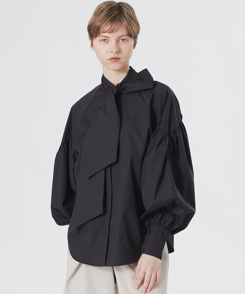 大ぶりのスカーフタイとボリュームスリーブが特徴のブラウス【素材】サラッとしたタッチが特徴のシャツ地を使用。家庭洗濯が可能なのも嬉しいポイントです。【シルエット/デザイン】見た目にもボリュームを感じられるスリーブがデザインポイント。衿のスカーフタイは取り外しが可能なので、スタンドカラーシャツとしての着用も可能です。【スタイリング/その他】一枚で着映えするシャツは、素材に表情があるボトムスと合わせたシンプルなコーディネートや、ベストなどとのレイヤードスタイルがおすすめです。【お手入れ方法】こちらの商品は、おしゃれ着洗いでのお洗濯が可能です。━━━━━━━━━━━━━━━━━━━━━━━━━━お買い物をお楽しみ頂くために<商品のお気に入り登録>完売カラーの再入荷通知など、お得な情報をお届けします。<注意事項>この商品はサンプルでの撮影を行っています。実際の商品とイメージが異なる場合がございます。撮影環境により、光の当たり具合で色味が違って見える場合があります。あらかじめご了承下さい。