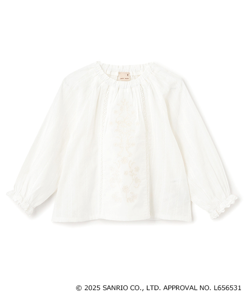 コットンレースが大人可愛いブラウスです。フロントにはマイメロディ、マイスウィートピアノ、お花を刺しゅうで繊細に表現しました。衿ぐりと袖口はやわらかなゴムを使用し、ゆったりと快適な着心地を実現。肌馴染みの良いやさしいカラーリングでご用意しました。内側にお名前を記入できるタグつき。【透け感】やや透ける【生地の厚さ】普通【伸縮性】なし【裏地】なし【ポケット】なし