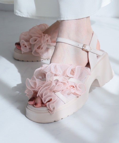 2026年夏再販・新色と新サイズ追加大好評の為、小さいサイズを増やしました!人気の厚底シアーフリルサンダルに夏のコーデに映える3色が仲間入り!ボリュームのシアーフリルが華やかなストラップサンダル!厚底で華奢見せ!スタイルアップが叶うアイテム。ガーリーやフェミニンなスタイルはもちろん、カジュアルやハンサムスタイルに合わせてレディなエッセンスをプラスするのも◎シンプルなデニムスタイルから、スカートやワンピースコーデなど幅広いテイストに合わせやすい。大人カワイイデザインはガーリーコーデや甘辛MIX、ミニ丈や韓国コーデにもマッチ!◇履きやすさのポイント◇・足が痛くなりにくく疲れにくい低反発クッションインソール・柔らかいアッパー素材でソフトな足当たり・プラットフォームでヒールの高さが気になりにくく安定感があって履きやすい。・アンクルストラップで足をしっかり固定できるので歩きやすい。・ストラップの金具にゴムが付いているので微調整がきいて痛くなりにくい・見た目よりも軽くて足が疲れにくい< サイズ詳細> ■SS (21.0-21.5cm)■長さ:22.1cm/ワイズ:20.0cm/幅:7.8cm/ヒール高さ:6.3cm■S (22.0-22.5cm)■長さ:23.1cm/ワイズ:20.7cm/幅:7.9cm/ヒール高さ:6.3cm■M (23.0-23.5cm)■長さ:24.1cm/ワイズ:21.4cm/幅:8.0cm/ヒール高さ:6.3cm■L (24.0-24.5cm)■長さ:25.1cm/ワイズ:22.1cm/幅:8.1cm/ヒール高さ:6.3cm■LL (25.0cm)■長さ:25.6cm/ワイズ:22.5cm/幅:8.2cm/ヒール高さ:6.3cm※サイズスペックについては、VivianCollection独自の方法により採寸しております。※()の中が足の対応サイズとなり、長さは靴の長さを表示しています。※靴の長さとは、靴のつま先から靴の踵の長さを表記しております。※こちらの商品は靴底の刻印サイズと貼付シールのサイズ表記が異なりますが、貼付シールが当店の正しいサイズ表記となります。プチプラシューズ専門店「VIVIAN COLLECTION」 ▼お気に入り登録をおすすめします▼ ♡をクリックしてお得なセール情報や、再入荷情報、ラスト1点の通知など、お買い得情報をいち早く受ける事ができます。ブランド【VIVIAN COLLECTION】のお気に入り登録も一緒に追加するとお得なニュースを配信しております♪