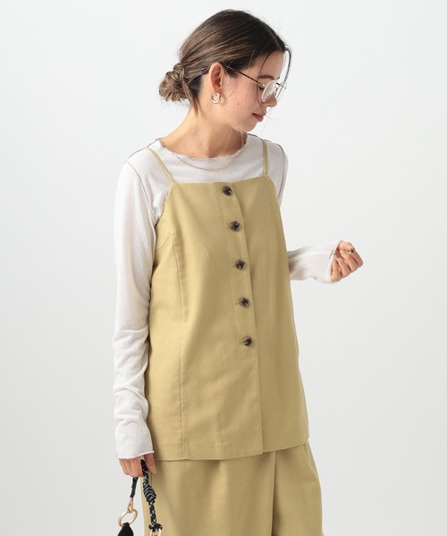 セットアップコーデでも単品でもスタイリングのアクセントになるキャミビスチェ ーーー ★おすすめポイント★ [1]リネン混の麻カスが残った素材 [2]春夏にぴったりな素材感 [3]マーブルボタンがアクセントに [4]同素材のアイテムとセットアップ可能 ーーー [fabric] リネン混で、カジュアルな麻カスが残った素材。 落ち感もあり麻のカラーを生かしたナチュラルな生成カラーと、春のアクセントカラーのイエローカラーと2色展開。 [design] キャミ型のビスチェデザイン。 前中心開きの上めに付けた、マーブルボタンがアクセントになっています。 [styling] インナーを重ねて、同素材展開のパンツを合せた、セットアップコーデが◎ 単品使いでも万能に使えるアイテム。 【同素材のセットアップアイテムはこちら】 ノーカラーリネンジャケット(283553) リネンラップパンツ(251167) ------------------------------------- ≪お買い物をよりお楽しみいただくために≫ ◆商品のお気に入り登録(ハートマークをクリック) 完売カラーの再入荷通知や、完売間近の通知、セールの通知も受けることができます。 ◆ブランドのお気に入り登録 新商品や再入荷など、いち早くブランドのお得な情報を受け取ることができます。 -------------------------------------