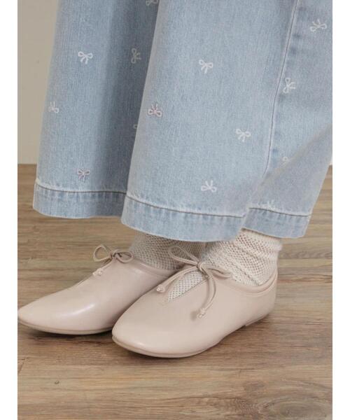 可愛らしいアクセントになるリボンが施されたシューズ。フラットタイプになっているので、歩きやすく疲れにくいのがポイントです。どんなスタイリングにも取り入れやすいフェイクレザー仕様◎季節を問わず、幅広いシーンで活躍してくれるアイテムです。 ※商品画像は、撮影環境やお客様のご利用のPC・スマートフォンのモニター環境などにより実物と色味に差異がある場合がございます。