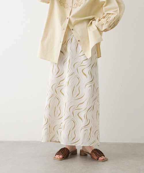 オリジナルプリントが目を引くスカート 〇オリジナルのマーブル柄 〇シンプルなナローシルエット 〇ウエストがスッキリ見える仕様 styling オリジナル柄が目を引くナロースカートはスウェット等とカジュアル合わせやジャケットとスタイリングして綺麗めにも、オンオフで着回しやすいアイテムです! 【2025 Spring/Summer】【25SS】 ※この商品は素材及び編地の性質上、着用中、着脱時、及びアクセサリー等で引きつれ、引っ掛かり易い為、取扱いにはご注意ください。 ※商品画像は、光の当たり具合やパソコンなどの閲覧環境により、実際の色味と異なって見える場合がございます。予めご了承ください。 ※商品の色味の目安は、商品単体の画像をご参照ください。 ▼お気に入り登録のおすすめ▼ お気に入り登録商品は、マイページにて現在の価格情報や在庫状況の確認が可能です。 お買い物リストの管理に是非ご利用下さい。 素材感 透け感 : なし 伸縮性 : ややあり 裏地 : あり 光沢 : なし ポケット : なし SM