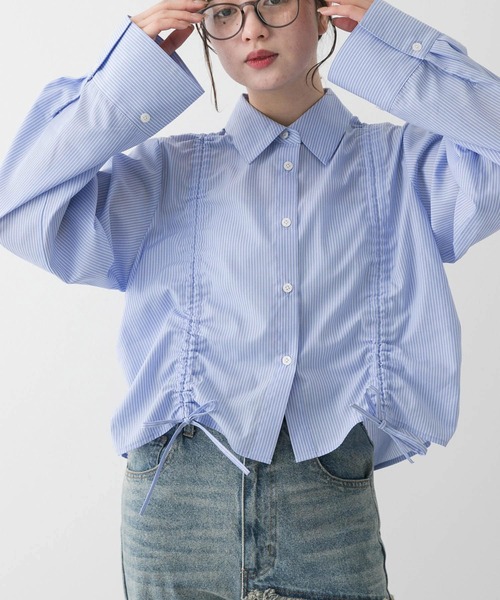トレンド感たっぷりの一枚で着映えするクロップドシャツ 〇シャーリングのギャザーでは立体感だでて華やかな印象に 〇クロップド丈でウエストの位置が高く見え脚長効果も◎ 〇コンパクトなシルエットにシャーリングアクセントでカジュアルからキレイめコーデにも幅広く活躍できる styling クロップドシャツ×ワイドパンツ、ハイウエストのアイテム合わせは脚長効果も抜群です。ブラウスにデザインがあるので、シンプルなアイテムに合わせてもおしゃれコーデができます。 【2025 Spring/Summer】【25SS】 ※商品画像は、光の当たり具合やパソコンなどの閲覧環境により、実際の色味と異なって見える場合がございます。予めご了承ください。 ※商品の色味の目安は、商品単体の画像をご参照ください。 ▼お気に入り登録のおすすめ▼ お気に入り登録商品は、マイページにて現在の価格情報や在庫状況の確認が可能です。 お買い物リストの管理に是非ご利用下さい。 素材感 透け感 : ややあり(OFF WHITE,YEL×WHT) 伸縮性 : なし 裏地 : なし 光沢 : なし ポケット : なし one