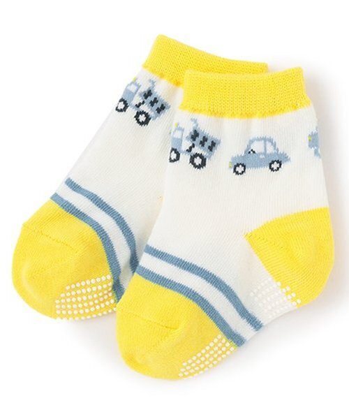 ポップなクルマ柄が可愛らしいポイントになったクルーソックスです。 かかと、つま先、はき口を同色系でまとめて、靴を脱いでもおしゃれな雰囲気に仕上げました。 長すぎない丈感なので、足首周りがもたつかないのもうれしいところです。