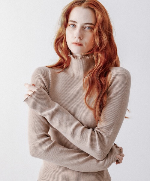【Design & Styling】 1枚着はもちろん、インナーとしても 着まわし力抜群のハイネックニット。 ベーシックに着回せるアイテムだからこそ メロウフリルのデザインや、スリット入りで クシュっと長めの袖丈など、DEICYらしい フェミニンなディティールにこだわりました。 【Fabric】 柔らかい肌触りと程良いフィット感が 着心地の良いリブニット素材。 定番のオフホワイトとブラック 着回しの効くベージュの3色展開。 透け感:ややあり(オフホワイトのみ) 裏地:なし 伸縮性:あり 光沢感:なし オフホワイト/ブラック Staff:161㎝ Staff:150㎝ ベージュ Model:H170cm B82cm W60cm H87cm