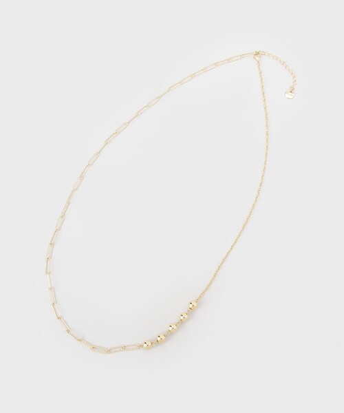 Design Point 3種類のチェ-ンをMIXしたデザインネックレス。 シンプルながら個性的なデザインは、幅広いコーディネートに合わせられてほどよい存在感を放ちます。 ※照明の関係により、実際よりも色味が違って見える場合があります。また、パソコン・スマートフォンなどの環境により、若干製品と画像のカラーが異なる場合もございます。 店舗へのお問い合わせ商品番号:523-02031 ●製品寸法: 00(FREE):全長55.2cm モチーフ直径0.5cm 付属袋H12.5cm 付属袋W10cm 備考: