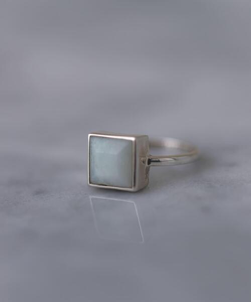 スクエア型にカットされたシャープなシルエットに目を奪われるストーンリング。 グレーがかった青緑が清涼感溢れる印象の天然石、アマゾナイトを使用し、手元にさりげなく彩りをプラスしてくれます。 メインリングとしても、他のリングと組み合わせてもバランスよくお使いいただけるアイテムです。 ▼色違い(GLD×RED)のご用意もございます▼ SMA3-2KF002 square carnelian ring ※この商品は天然石を使用しているため、色味に個体差があります。特定の色味の商品をお選び頂くことはできませんので、予めご了承ください。 ※シルバーの商品は、空気中の硫黄、汗、皮脂、薬品等に反応し変色する特性がございますが、シルバークロスやクリーナーでの御手入れにより輝きを取り戻す事が出来ます。お使いにならない時は密封袋に入れ、湿気の少ない場所で保管してください。 天然石へのシルバークロス及びクリーナーのご使用は、メッキの剥がれ、変色やシミの原因となる事が有りますのでご注意ください。 ※デリケートな素材を使用しているため、強く引っ張ったり、強い衝撃を与えると 破損してしまう可能性がありますので十分お気を付けください。汗、皮脂等が付着していると黒ずみや変色の原因となりますのでご使用後はシルバークロス、もしくは柔らかい布でお手入れして下さい。黒ずみが気になる場合はシルバークリーナーやゴールドコーティング対応のクリーナーをご使用ください。 ※運動・炊事・洗濯・入浴・温泉・海水浴等は外していただきますようお願い致します。 サウナや温泉などの高温な場所、また極寒地でのご使用は、火傷・凍傷の原因となる場合がございますので着用を避けて下さい。 ※発疹、かゆみ、赤み、ただれなどの症状が出た場合は、すぐに着用をやめていただき専門医にご相談ください。金属アレルギーがない方でも、汗をかいたり体調の悪い時に着用していると金属アレルギーに似た症状が出ることがございますのでご注意ください。 ※天然石を使用した商品は熱と衝撃に弱い特性がございます。破損の原因となりますので、高温多湿な環境でのご使用はお控えください。また、過度の衝撃を加えますと、接着面に影響がおよびますので、十分にお気をつけてご使用ください。 サイズ : 11=11号 総重量 : 約4g ※商品画像は、光の当たり具合やパソコンなどの閲覧環境により、実際の色味と異なって見える場合がございます。予めご了承ください。 11