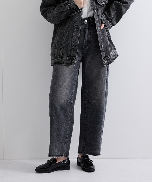 ーカーブデニムはヴィンテージ風加工でアップデートー●POINT膝位置で切り替えて、裾に向かってテーパードなラインにした、ほのかに優しい弧(カーブ)を描く新シルエット。懐かしくもあり、新しくもある、程よくカービーなシルエットのデニムパンツは、コーディネートに悩まない包容力のある絵になるアイテムです。●FABRICポリウレタン混でややストレッチがあるので、楽に履いていただけます。●COORDINATEクロップド丈のゆるトップスをあわせて旬のバランスでフレッシュな印象で着こなしたり、オーバーサイズのトップスをあわせて、カジュアルに着こなしたりとコーディネートの幅が広がります。----------------------------------透け感:なし厚さ: 普通伸縮性:あり裏地: なしポケット: あり--------------------------------------------------------------------洗濯方法家庭洗濯:液温は40℃を限度とし、洗濯機で弱い洗濯ができる。自然乾燥:日蔭の吊り干しがよい。アイロン:底面温度110℃を限度としてアイロン仕上げができる。ドライクリーニング:ドライクリーニング禁止。----------------------------------■モデル身長 171cm 着用サイズ M※画像の商品はサンプルとなりますので実際の商品と仕様、加工、サイズが若干異なる場合がございます。※お客様のモニター環境により実際のお色と多少異なる場合がございます。※撮影状況や光の当たり具合により、色合いが異なって見える場合がございます。▼商品のお気に入り登録ハートマークをクリックし、お好きなカラーを選んでお気に入りに登録完売カラーの再入荷通知や、ラスト1点の通知、セールの通知も受け取ることができます。▼ブランドのお気に入り登録新商品や再入荷等、いち早くブランドのお得な情報を受け取ることができます。