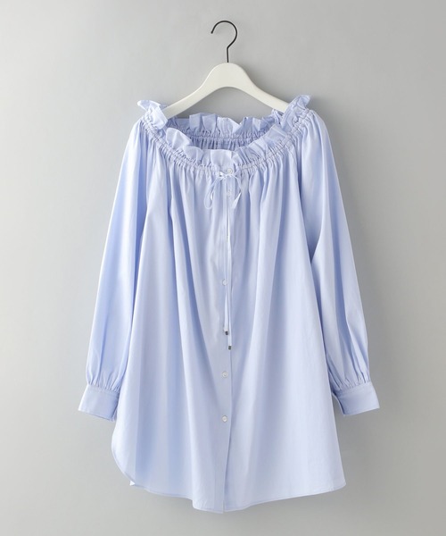 ーーー フリルデザインがポイントのブラウス 袖のアレンジを楽しんでいただける一枚です ーーー 【デザインと特徴】 襟のギャザーフリルが目に留まるブラウス。 前後2WAYデザインで、オフショルとしても着ていただけます。 襟元は、ゴムギャザーにリボンを通したデザインにすることで、お好みの襟ぐりに結んでアレンジ可能。 シャツ素材のオックスを使用し、裾や袖口にシャツのディティールデザインを残すことで甘さを抑えました。 大人の方でも着やすいブラウスです。 【素材特徴】 細番手の綿糸を使用したコットンオックスを採用。 カジュアルすぎずに、上品な印象の素材です。 【スタイリング】 デニム合わせで、甘さとカジュアルのミックスコーデに。 ナロースカート合わせで、キレイ目な印象にも◎ 【洗濯可否】 洗濯機での洗濯が可能です。 --------------------------------------------------------- 《インフォメーション》 ◆商品のお気に入り登録 ♡をクリックで気になるアイテムをお気に入り登録していただくと、 以下の通知を受け取ることができます。 ・入荷 ・再入荷 ・ラスト一点 ・セール対象時 ◆ブランドのお気に入り登録 新商品や再入荷、セール、クーポン配布などのお得な情報を受け取ることができますので、是非ご登録ください♪ 公式Instagram >>> 【@apartbylowrys 】 おすすめアイテムや新作情報、" ショップニュース "を更新中! ぜひフォローしてみてくださいね^^