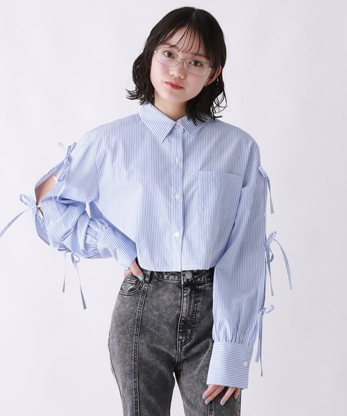 ーーー ◆デザイン 春らしいおしゃれシャツが登場。 お袖のスリット開きリボンがカワイイデザイン。 フロントにキラッと輝くストーンが付いているのもポイントに! 程よい着丈でスッキリと着用いただけます。 アウターのインナーや1枚でも映える優秀トップス! ◆素材 さらっとハリのある生地感。 ーーー ◆スタイリング どんなアイテムとも合わせやすい◎ 細めパンツやロングスカート合わせの大人っぽスタイルや、 ミニボトム合わせの甘めスタイルがカワイイ。 ボリューム感のあるデニムパンツと合わせるカジュアル見せもおススメです! S 140~150cm M 150~160cm L 160cm~ ※撮影環境によりカラーが異なって見える場合があります。あらかじめご了承ください。 ▶▶INFORMATION◀◀ ■商品のお気に入り登録(♡マークをクリック!) 完売カラーの再入荷通知やお得なタイムセール通知などを受け取ることができます♪ ■ブランドのお気に入り登録 新商品や再入荷など、ブランドからのおトクな情報を受け取ることができます♪ あわせてぜひご登録ください!