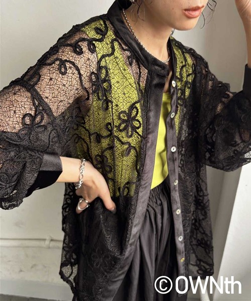 ■ベーシックに異彩を添えて、自分らしさを解き放つブランド、『OWNth(オンス)』 立体的なフラワーモチーフ柄のモールレースが、視線を惹きつける華やかなシャツ。 繊細な透け感と軽やかな素材が織りなす表情豊かなデザインで、いつものコーデに上品な抜け感をプラスします。 ネックラインはスタンドカラー(バンドカラー)仕様で、首元をすっきり美しく見せてくれるのも魅力です。 ふんわりした袖丈とヒップが隠れる丈感が体型カバーにもなり、さらっと羽織るだけで高見えする仕上がりに。 前開きのボタンタイプで、シャツとしても羽織りとしても活躍する形状。 異素材のベロア切り替えがさりげない艶感を加え、日常からオケージョンまで幅広いシーンに映える存在感を放ちます。 デニムでカジュアルに、ワンピースに重ねてパーティ・結婚式・二次会などのフォーマルシーンにもおすすめです。 カラーはアイボリー(白・ホワイト・Ivory)、トープ(茶色・ブラウン・Taupe)、ブラック(黒・くろ・Black)の3色展開。 ------------------------- -OWNth- 人が着てはじめて価値がつく、 それぞれの服と人との物語のはじまりを提案。 何からも影響を受けずに、自由に"自分"を生み出す。 "人が着る"ことに重きを置き スタイリッシュかつシックなベーシックアイテムをもとに 服への愛着を湧き立たせるような異彩さと発想を表現するファッションブランド。 ------------------------- 【♡マークを押して、お気に入り登録を!】 『ラスト1点通知』、『再入荷通知』、『値下げ通知』など、お得な情報を受け取ることができます!! 気になったアイテムは今すぐ ”お気に入り登録” をお忘れなく★★