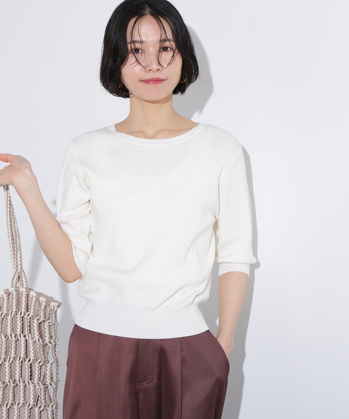 N.定番人気、着心地抜群の総針ニットです。 首元に沿うネックラインが顔まわりをすっきりと見せ、女性らしさを演出。肘が隠れる袖丈のため、手首に抜け感を出せます。 体のラインを拾いすぎないシルエットながら、裾まわりはリブなのでブラウジングのようにとまり、アウトスタイルが決まりやすい一枚。 シンプルなデザインなのでボトムスを選ばず、ONもOFFスタイルにもお使いいただけます。 ●取り扱いについては、商品についている品質表示でご確認ください。 ●撮影はサンプル商品で行っている為、仕様とサイズが異なる場合がございます。 ●スタジオ及び屋外で撮影した着用画像は、光の当たり具合やご覧のモニターによって色味が違って見える場合があります。予めご了承ください。 ●生産時期により色・素材・サイズ感など多少異なる場合がございます。予めご了承ください。 ≪お買い物をよりお楽しみいただくために!≫ ・「商品のお気に入り登録」 再入荷通知や、ラストの通知、セール通知も受け取ることができます。 ・「ブランドのお気に入り登録」 新商品や再入荷をはじめ、タイムセールやクーポンなどいち早くブランドお得な情報を受け取ることができます。