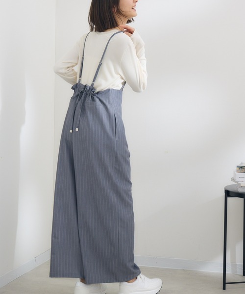 バックスタイルのギャザーディテールがポイントのサロペット [素材] ・透けない、落ち感のある素材が上品な印象の一着。 [デザイン] ・股上が深めで、アジャスター付きなので、幅広い身長の方にぴったりフィット。ワイドなシルエットが大人ムードのある着こなしを叶えてくれます。 ・サロペットの背面にはリボンが施されており、ギャザーの調節が可能。バックスタイルのアクセントにもなり、スタイリングのワンポイントとしてお洒落なデザインです。 ・便利なポケット付きで実用性も兼ね備えています。 ・細かいメタルパーツも良いアクセントになりモダンな印象に。 ・ベーシックに着回しやすい無地ブラックと、爽やかなストライプ柄のグレーの2色展開。 [スタイリング] ・春先はTシャツやブラウスを、秋冬はハイネックやロングTシャツなどロングシーズン着用可能なおすすめアイテムです。 ・小物次第でオンオフ着用可能で、合わせるアクセサリーを華やかにすればきれいめスタイルも叶います。 ■光沢感:なし ■透け感:なし ■裏地:なし ■生地の厚さ:普通 システムの都合上、店舗より入荷が遅れる場合がございます。 照明や光の当たり具合で色味が違って見える場合があります。 <25SS Collection 25Spring&Summer> 【お買い物をよりお楽しみいただくために】 ・商品のお気に入り登録をおすすめします! ♡マーククリックで登録できます。 完売カラーの再入荷や、ラスト1点になったときの通知、 セールの際に通知などお得な情報を受けることができます。 ・ブランドのお気に入り登録もご一緒にお願いいたします! 新商品や再入荷、などいち早くブランドの最新情報をお届けします。