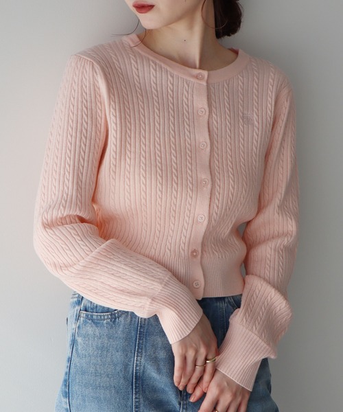 \2025 spring item/ \お気に入り登録者数2500人超え!/ フェミニンな女性らしい雰囲気を引き出すミニケーブル編みカーディガン。 ニットながらもやや薄手素材で、春の羽織としてぴったりな1着です。 トーンを揃えた胸元のロゴ刺繍もさりげないく上品なアクセントをプラス。 ボタンを閉めてプルオーバー風に着用するのはもちろん、さらっと肩にかけてもこなれ感のある着こなしが叶います。 透け感[なし] 生地の厚さ[薄手] 光沢感[なし] 伸縮性[あり] 裏地[なし] ポケット[なし] #春服#春カラー#パステルカラー ※画像はサンプル品を使用しているため、実際の商品とカラー、仕様、加工、サイズが若干異なる場合がございます。予めご了承ください。 ※モデル着用画像は光の当たり具合で色味が違って見える場合がございます。商品の色味は物撮りの画像をご参照ください。 ● earth music&ecology ● (アースミュージック&エコロジー) 「いいことある服。」 たかが服。されど服。波風の多い日々のなかでもほほえんで前を向くあなたを、つつんで一緒に歩きたい。 いいことあるかも。そんな期待までまとえる服をあなたに。 earth music&ecologyは、毎日を頑張る女性たちをちょっと前向きにするブランドです。 ▼ 商品のお気に入り登録がおすすめです ▼ 商品ページ内の「♡」ハートマークをクリック。完売時の再入荷や、最後の1点の通知、コーディネート画像がアップされたとき、お得なお値下げの際の通知を受ける事ができます。 【お知らせ】ページでも通知が確認できます。